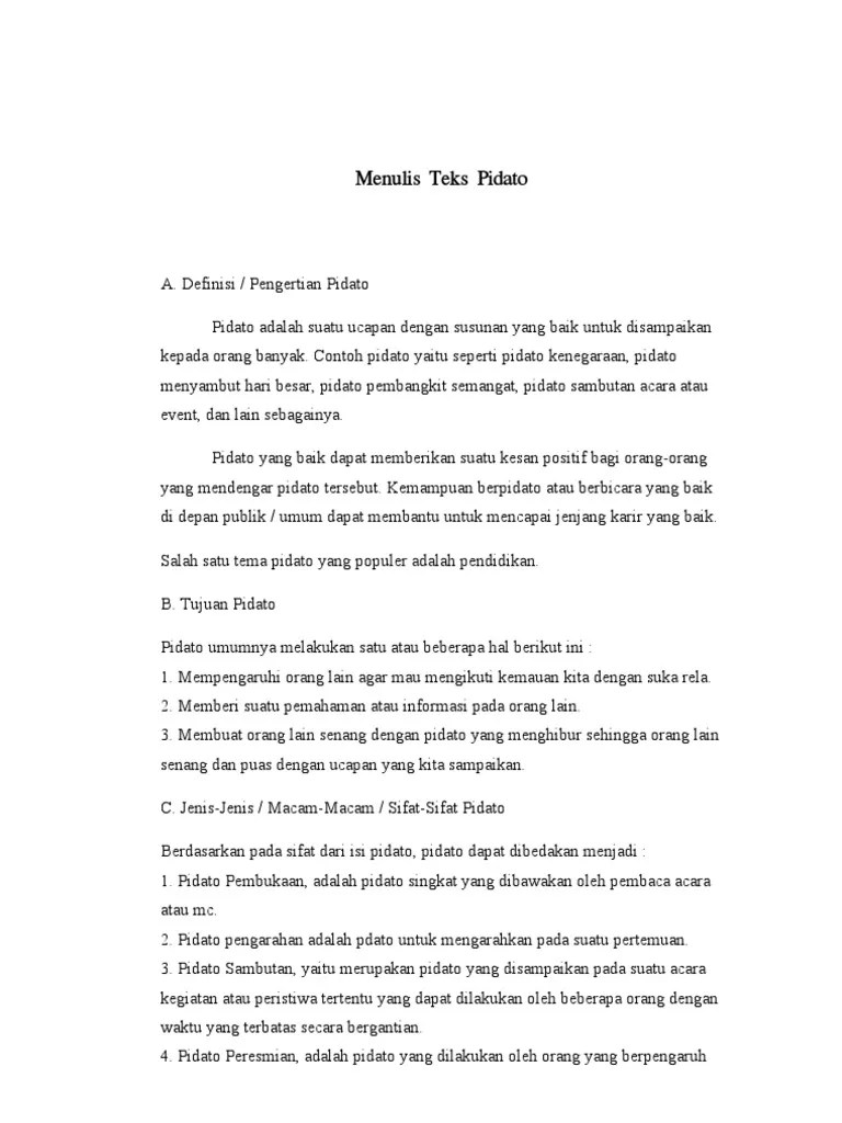 Namun, bagi sebagian orang yang belum terbiasa, berpidato di depan banyak . Biasanya pidato jenis ini lebih . Contoh pidato bahasa indonesia singkat sendiri ada banyak, seperti: Nur ardini izzati binti abd aziz (pismp tesl jun 2015) bismillahirrahmanirrahim. Di bawah ini adalah contoh teks / naskah pidato dengan tema " pidato bertema. Pidato jenis ini merupakan pidato yang dilakukan dengan membawa naskah atau teks untuk membacakan di depan khalayak umum.
